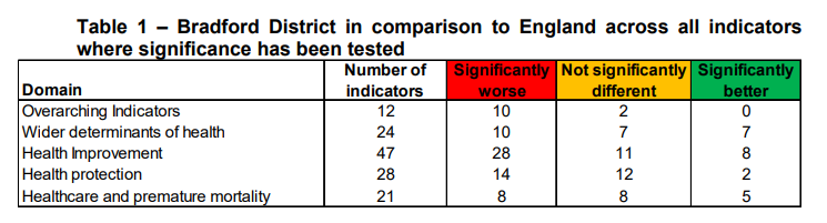 Health performance in Bradford District, breakdown;